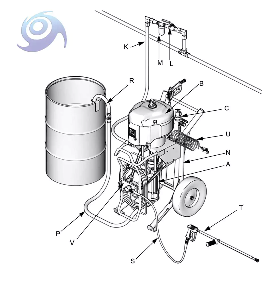 | A | Displacement Pump | L | Air Line Shutoff Valve |